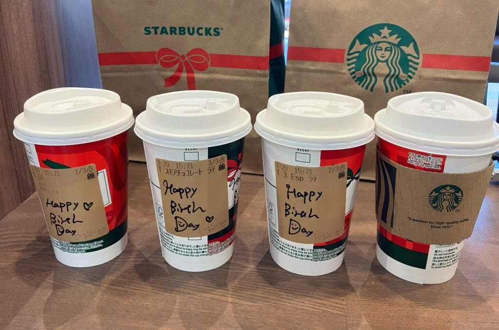 カップには店員さんが “Happy Birthday” とメッセージを書いてくださり、ほっこりと心温まるサプライズに。